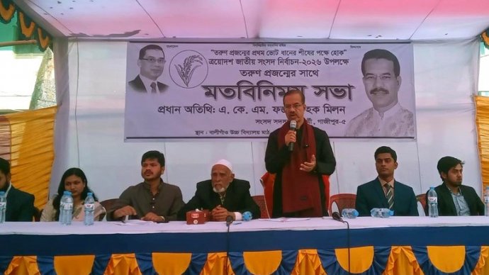গাজীপুর: কালীগঞ্জে ত্রয়োদশ জাতীয় সংসদ নির্বাচন উপলক্ষে তরুণ প্রজন্মের সাথে মতবিনিময় করেছেন গাজীপুর-৫ আসনে জাতীয়তাবাদী দল (বিএনপি) এর ধানের শীষ প্রতীকের প্রার্থী একেএম ফজলুল হক মিলন। শুক্রবার (২৩ জানুয়ারী) বিকেলে বালীগাঁও উচ্চ বিদ্যালয় মাঠে এ মতবিনিময় সভা অনুষ্ঠিত হয়।